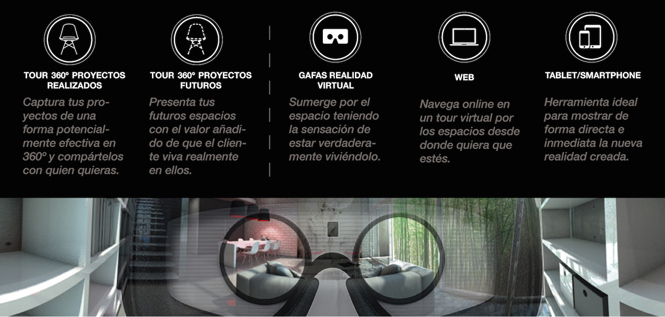 A través de este servicio la presentación de un proyecto tiene el valor añadido de hacer disfrutar al cliente la experiencia única de poder navegar por el espacio futuro, disfrutando una visión global en 360º de cómo quedarían configuradas sus estancias.